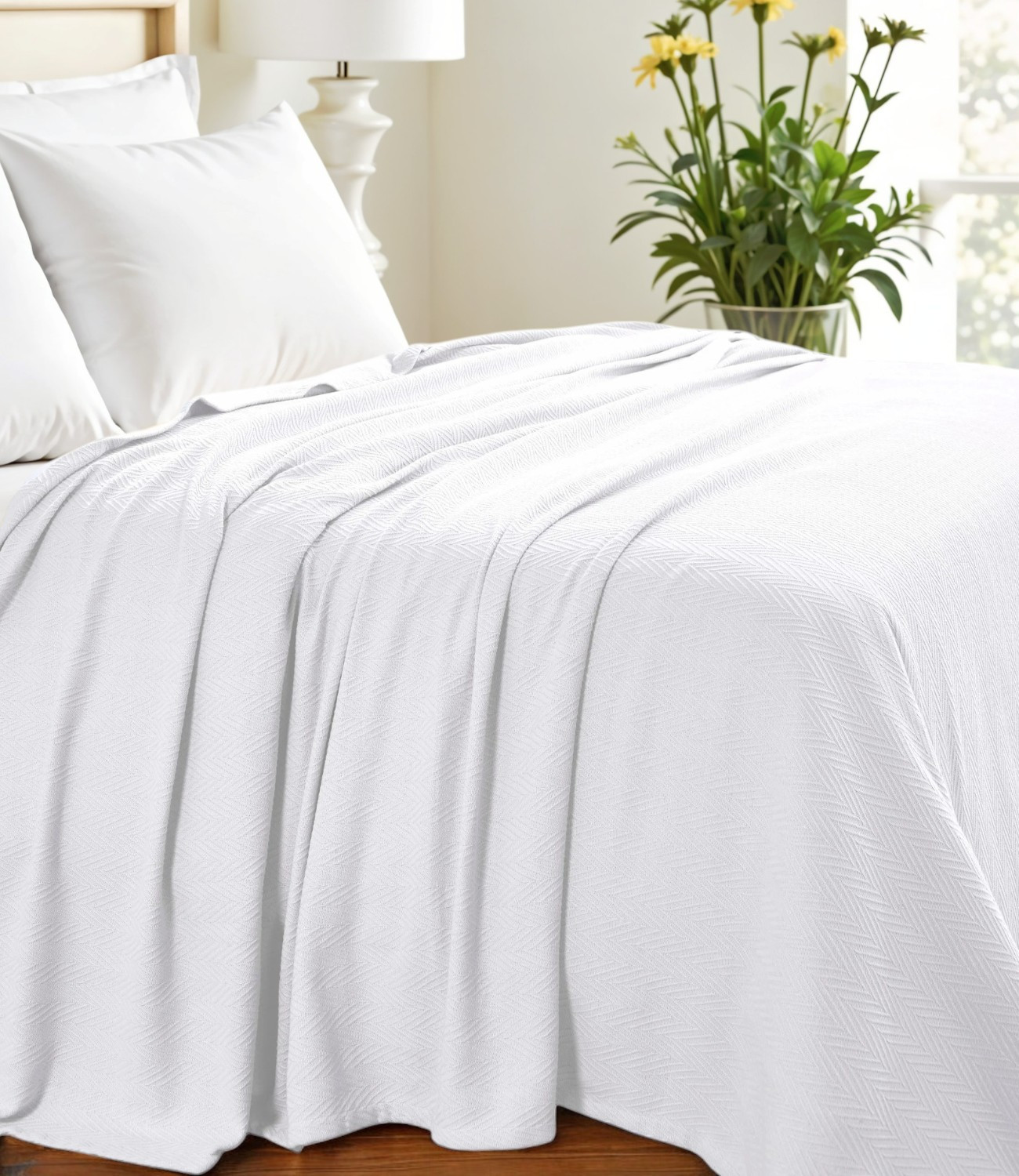This twin white cotton woven chevron blanket is a cozy and stylish addition to your bed ensemble, but can also be used on the sofa, in your office cubicle, or anywhere you need a warm and soft blanket. A classic and timeless design combines with cozy comfy style so this cotton blanket can deliver you a restful and comfortable sleep all year long. Enhance your space and the quality of your sleep with this soft and comfortable blanket that helps regulate your core body temperature, helps you to relax, and ultimately fall to sleep. 90-inch h x 66-inch w x 0.25-inch d.