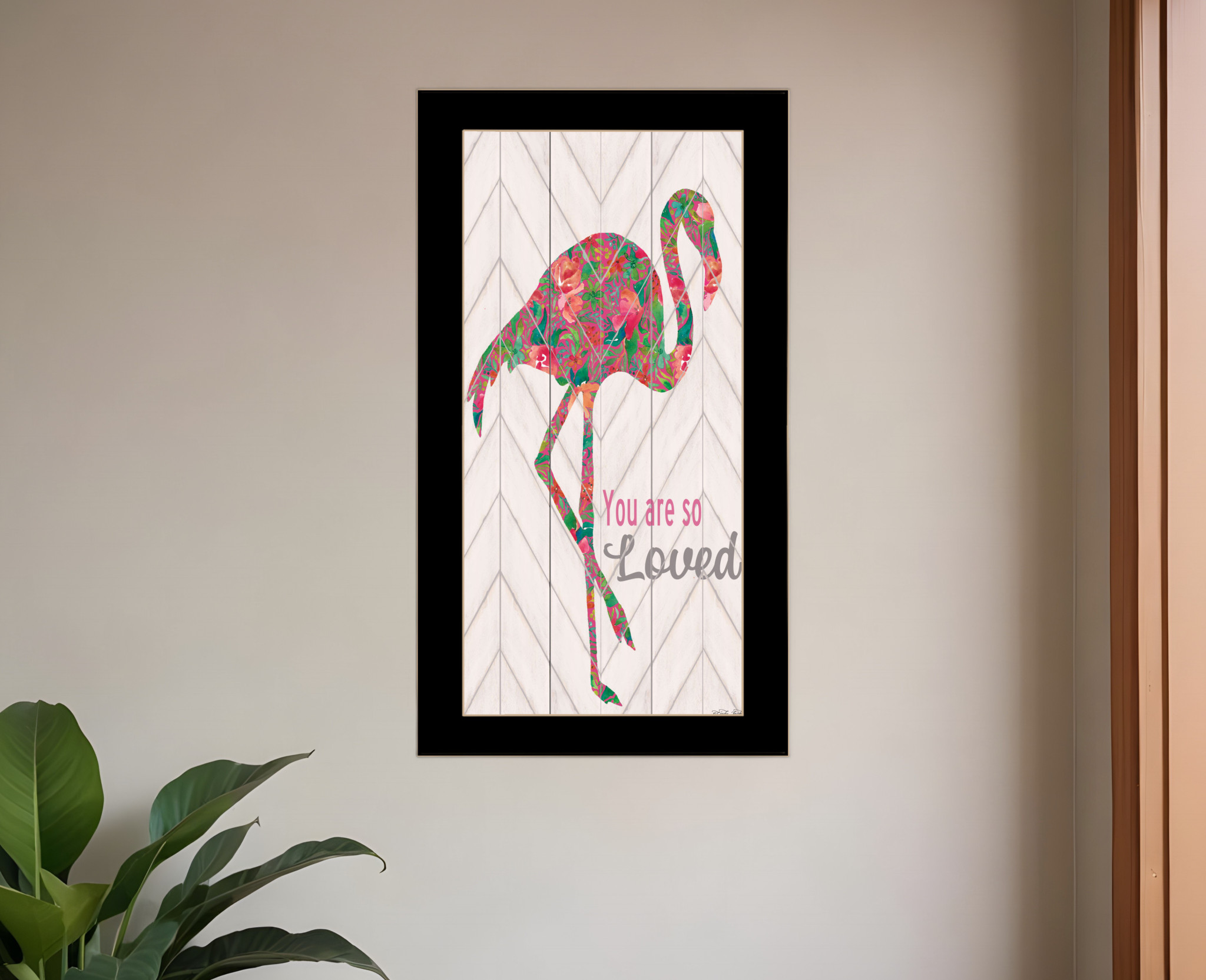Unique and decorative, this you are so loved flamingo black framed print wall art will leave a lasting impression. This print is a visual artistic expression that allows you to decorate your space in style. Reproduced for you on wood, this hanging decorative accent will be a trendy and fashionable way to dress your walls in a rustic and modern farmhouse vibe. Hang on your wall to add some up to date fashion and decoration. Instantly liven up your space with this art that brings color and dimension to your walls. 20-inch H x 11-inch W x 1-inch D
